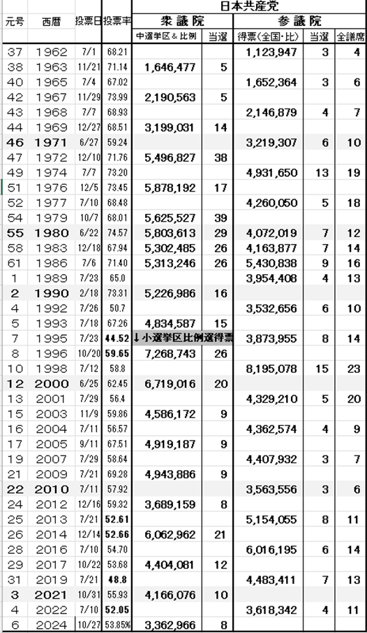 ・ そして肝心の、革新統一戦線運動は冷え込み、共産党は全国全分野で長期低落!
